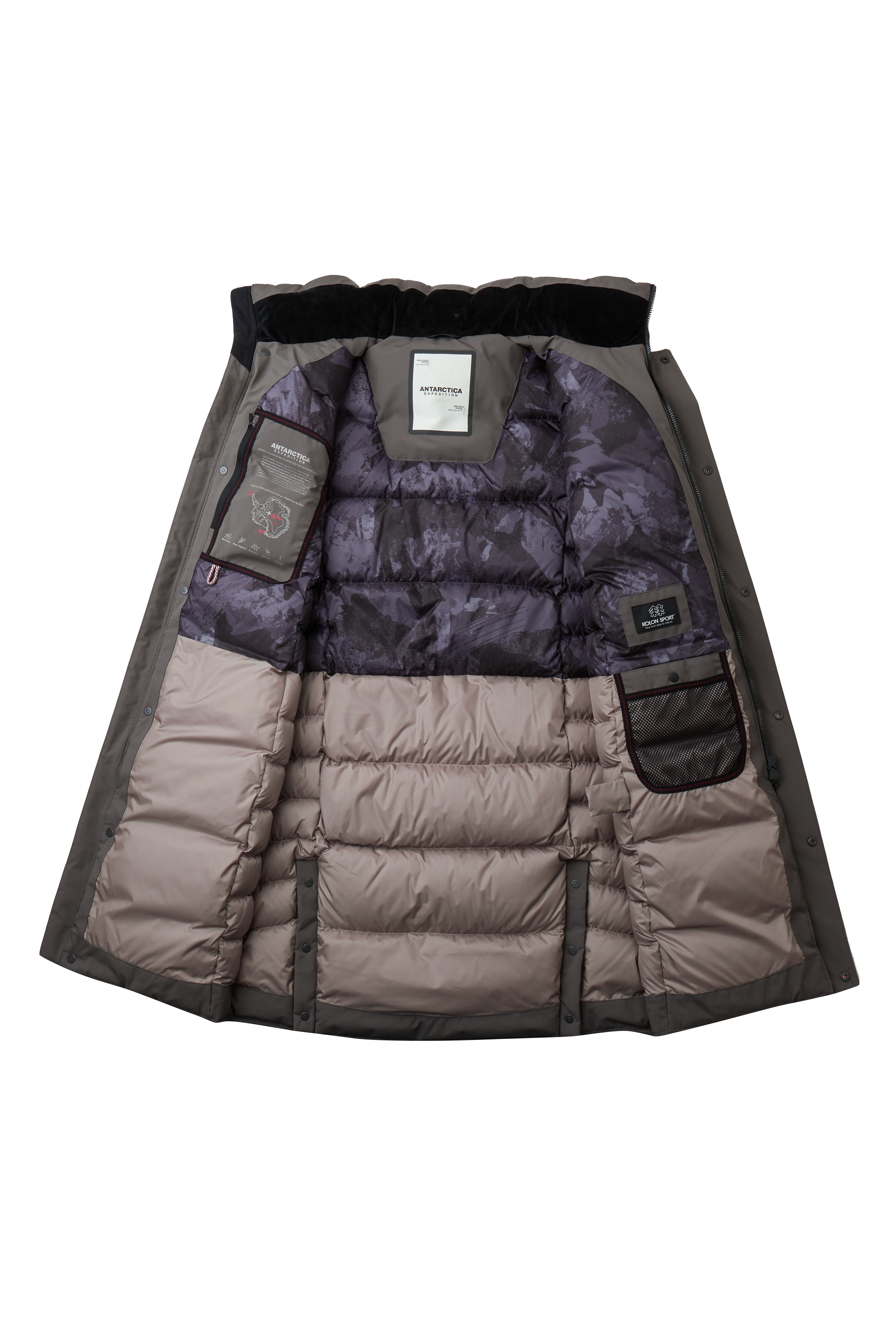 | 소재 | 겉감: 폴리에스터100%(수지제외) 안감1: 폴리에스터100%(수지제외) 안감2: 폴리에스터100%(수지제외) 충전재: 솜털90% 깃털10% 모자털: 천연모피(너구리) |