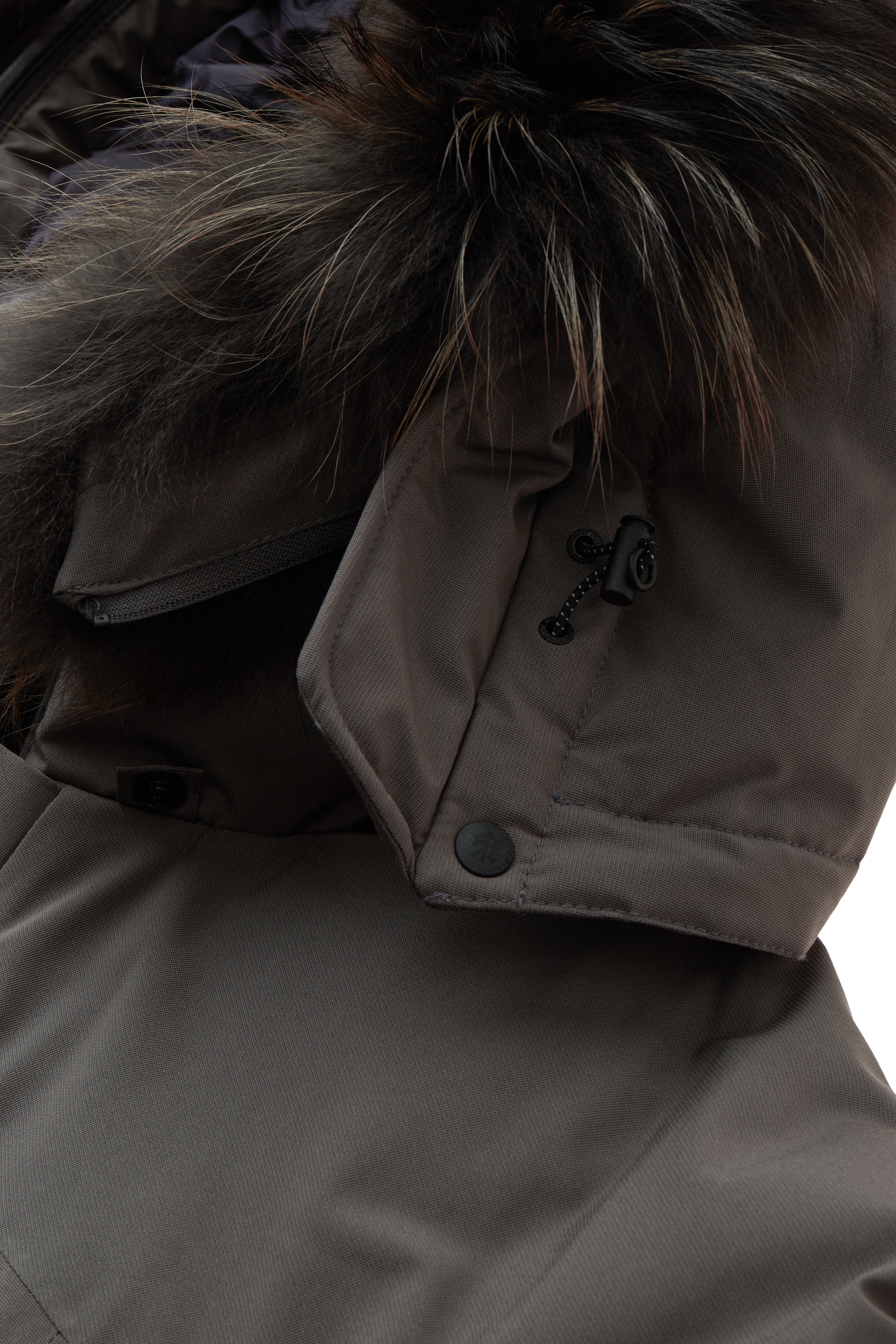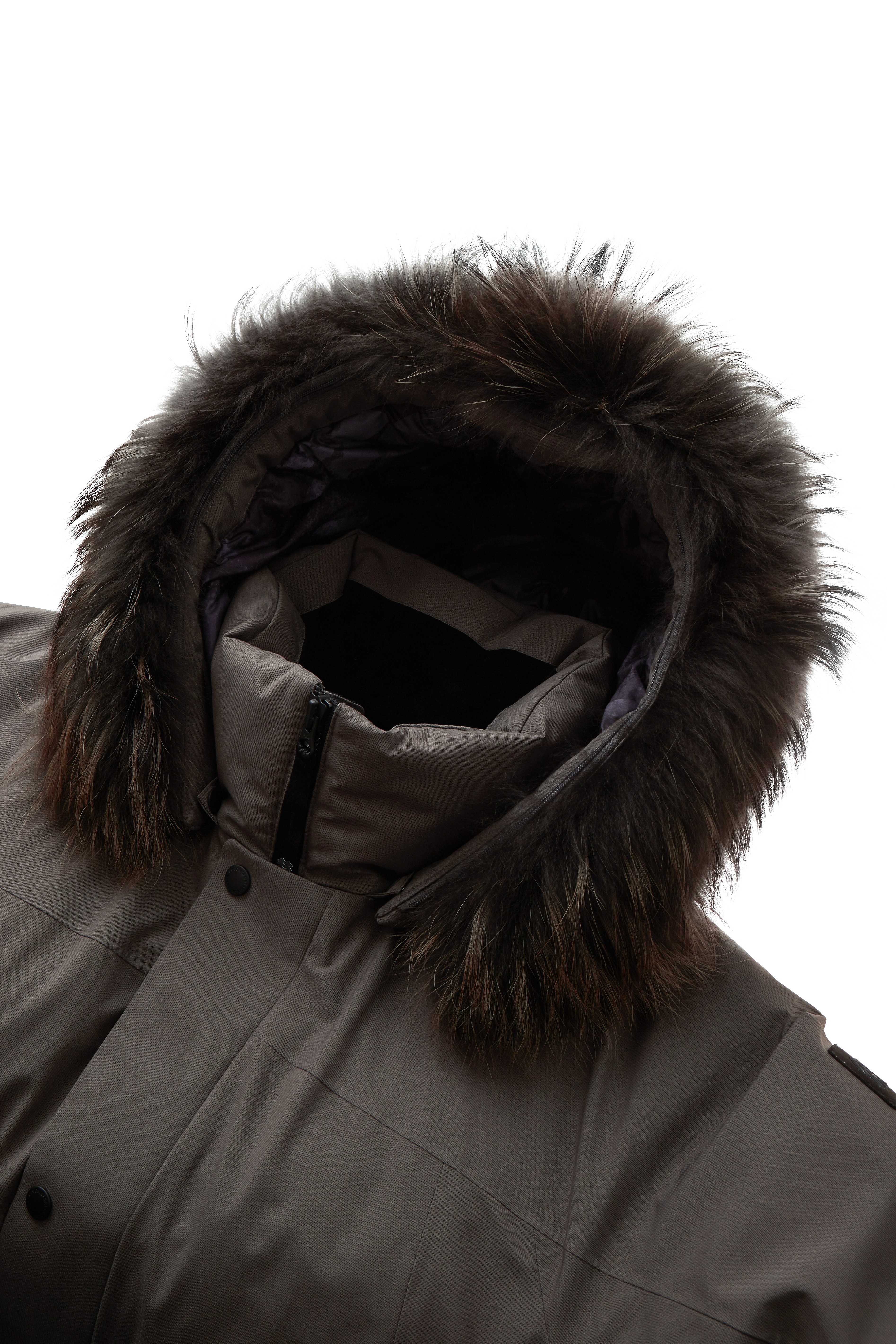 - 후드 핀라드 라쿤 퍼를 사용하여 차가운 바람에 보호.