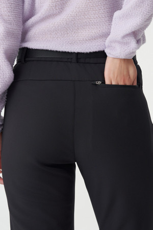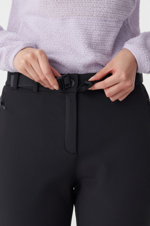 신축성이 뛰어난 기모 본딩 소재를 사용해 활동성과 보온성을 동시에 갖춘 여성 스탠다드 슬림 핏 팬츠입니다.