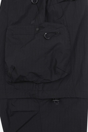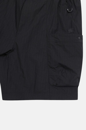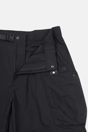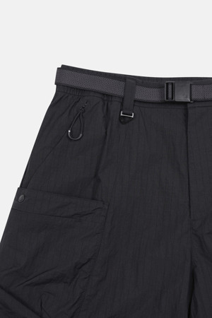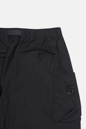 내구성이 뛰어난 립스탑 소재와 여유로운 루즈핏 실루엣이 특징인 기능성 카고 팬츠입니다.