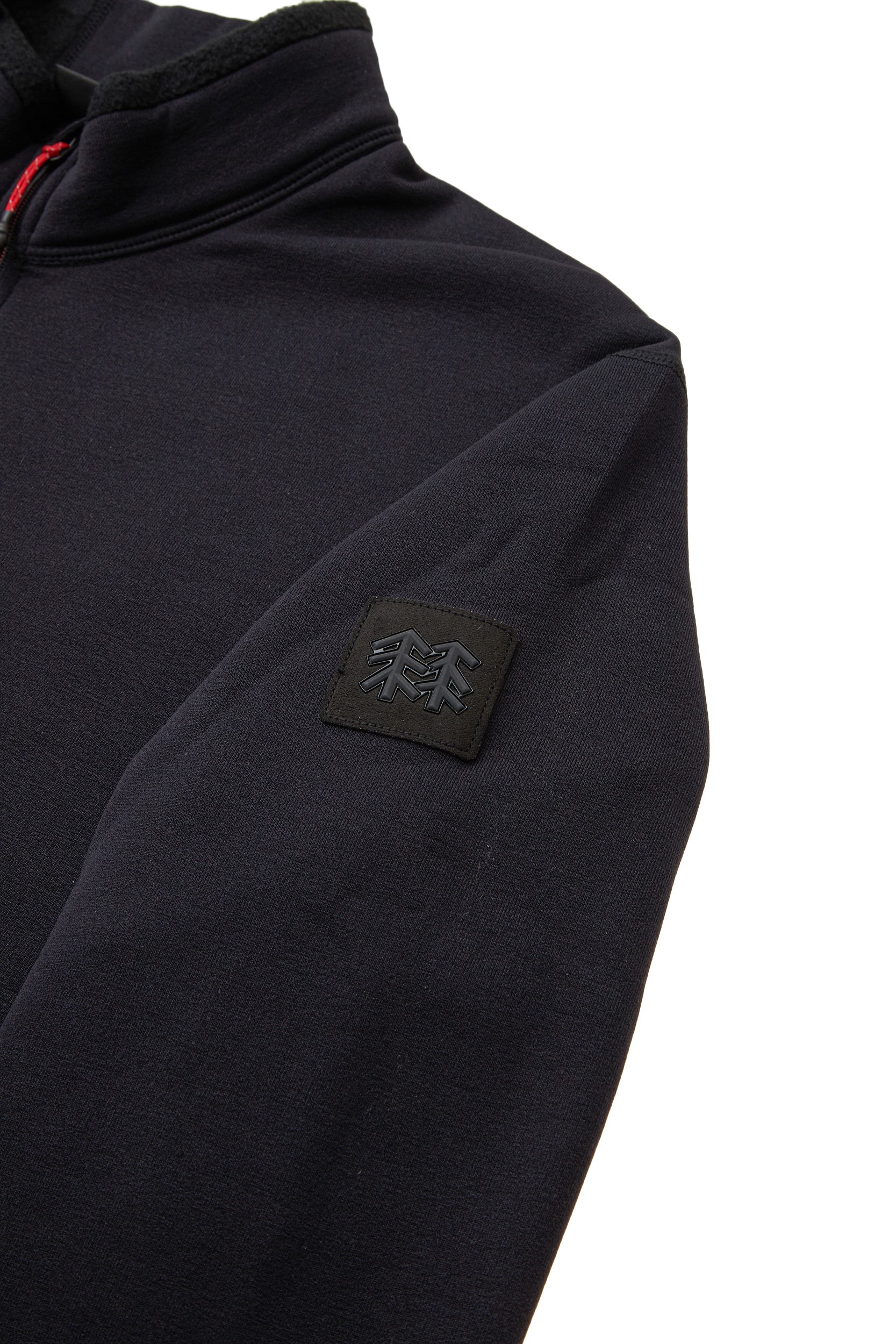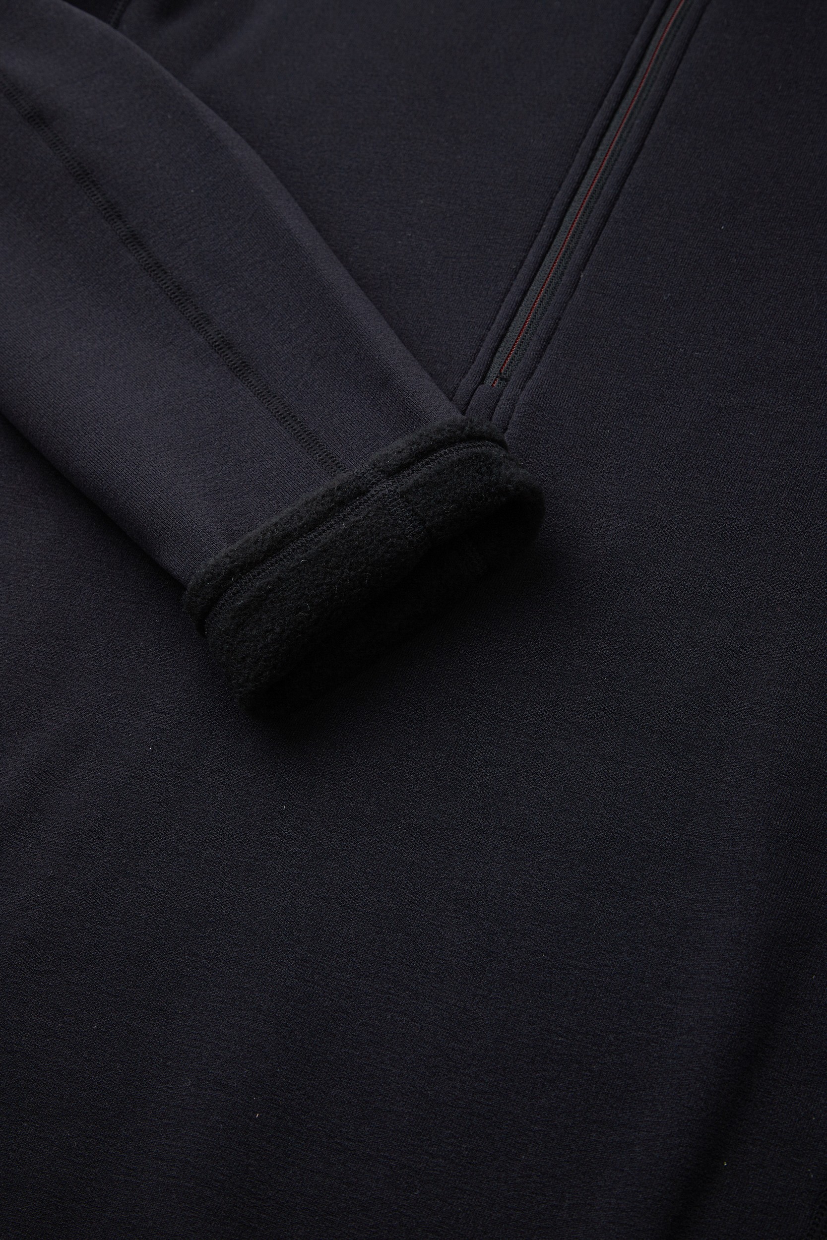 - 내부 기모 처리된 두께감 있는 스트레치 집업 티셔츠.