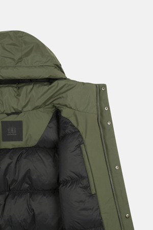 깔끔한 논퀼팅 디자인과 뛰어난 방풍 성능의 고어텍스 2L 소재를 적용한 중기장 다운입니다.
