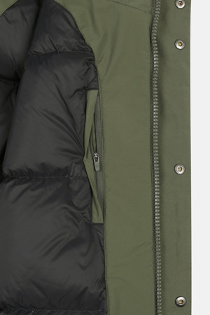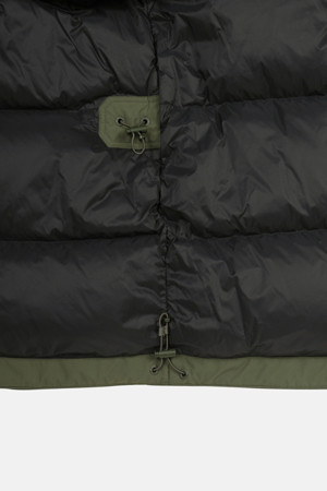 | 소재 | 겉감,배색: 폴리에스터 100% (코팅제외) 안감: 나일론 100% (코팅제외) 충전재: 솜털 80% 깃털 20% (재사용 우모가 사용되었음) (심지,보강재,상표,무늬,레이스,밴드 등 제외) |