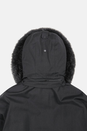강풍 차단과 보온성을 높인 탈부착형 후드 & 인디고 폭스 퍼 구성