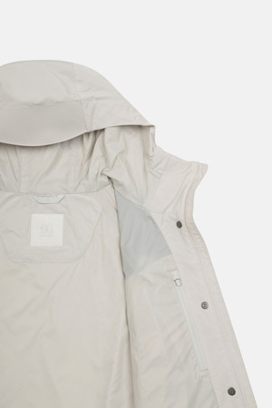 고밀도 메모리 원사를 사용하여 구김이 적고 방풍과 발수 기능이 뛰어난 여성용 크롭 재킷입니다.