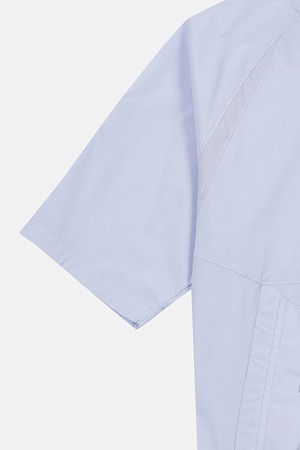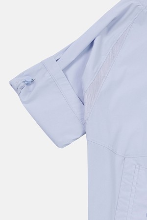 우븐과 트리코트 메쉬 소재를 결합하여 통기성과 활동성을 극대화한 솔라이트 하이브리드 반팔 아노락입니다.