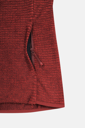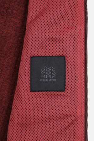 코오롱스포츠의 상록수 ‘솟솟’에서 영감을 받은 패턴을 적용한 여성 플리스 재킷입니다.