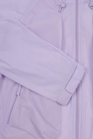 서로 다른 소재의 립 조직을 하이브리드로 조합하고, 소매에 자연스러운 주름 디테일로 디자인 포인트를 준 여름용 경량 재킷입니다.